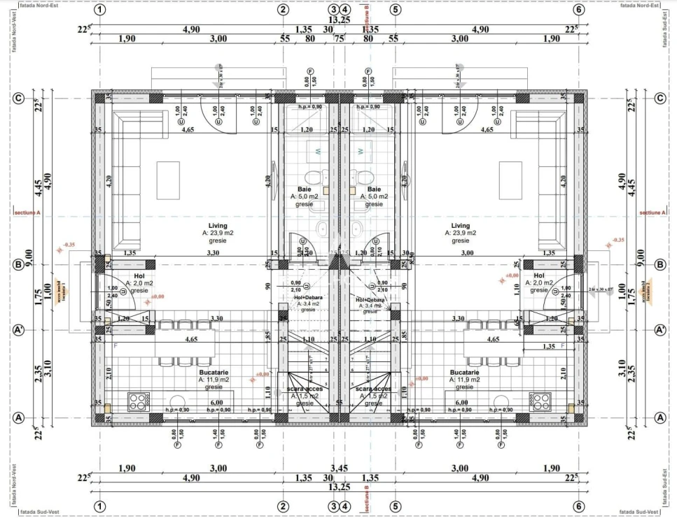 Plan Parter: antreu, living, bucatarie, camera tehnica