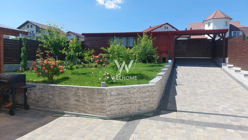 - Curte pavata de 350 mp + gradina cu gazon si pomi fructiferi, + filigorie/terasa + Carport pentru o masina + o Magazie de 50 mp