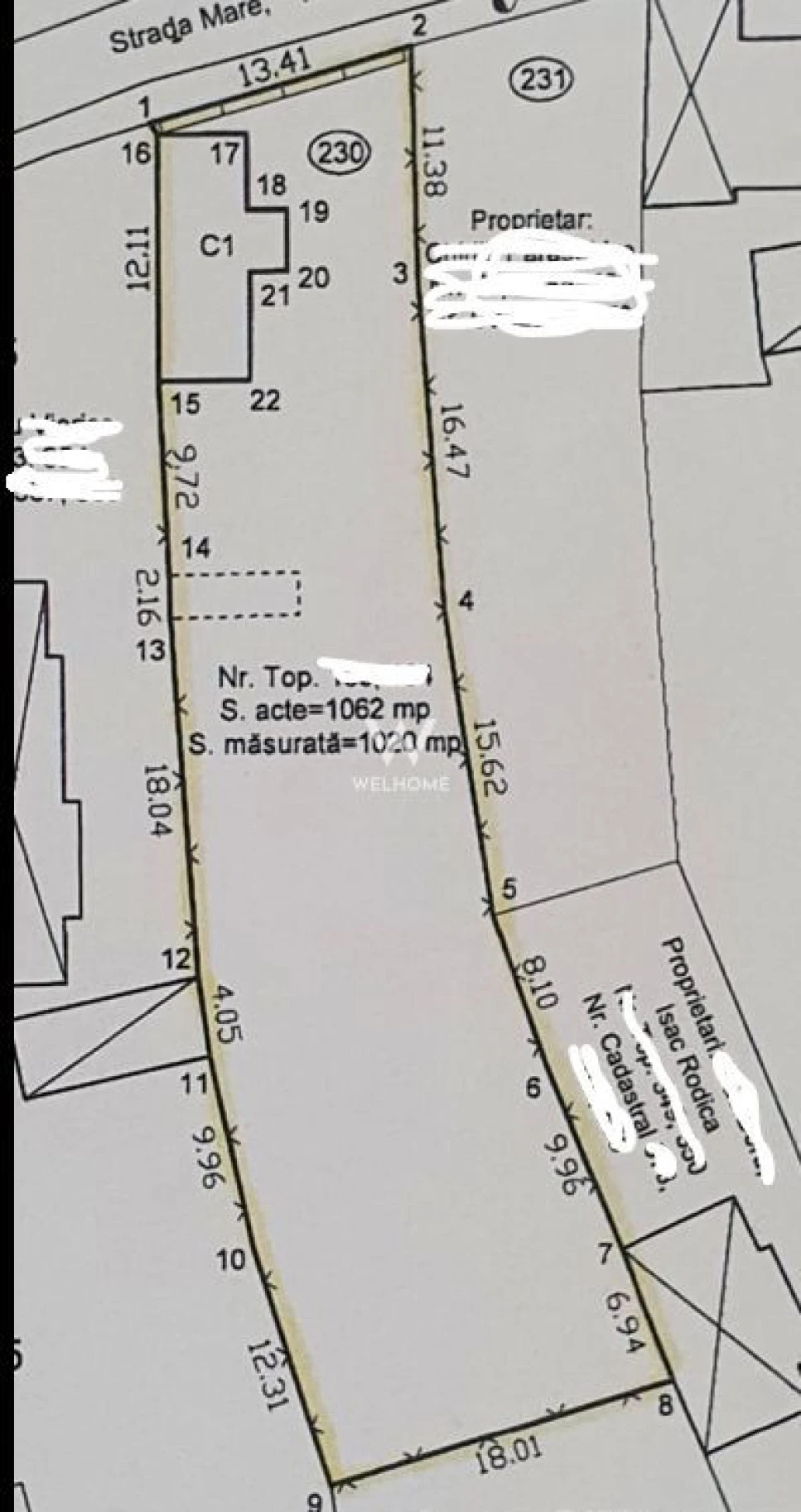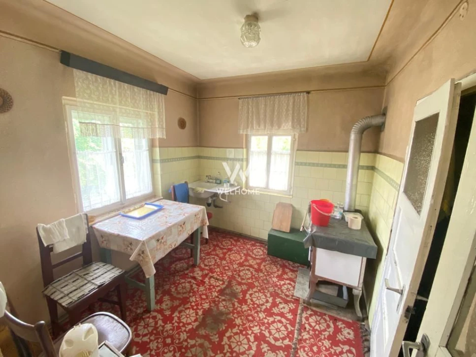 In interior, casa este distribuita astfel: hol, 2 camere, bucatarie, camara si baie. Curtea este generoasa, permitand parcare pentru 2-3 autovehicule. Casa are deschidere la strada de aproximativ 15 m, asigurand acces rapid la drumul principal.