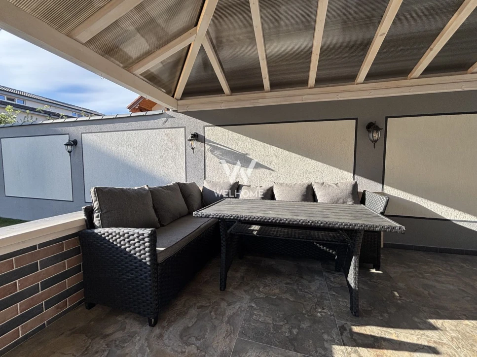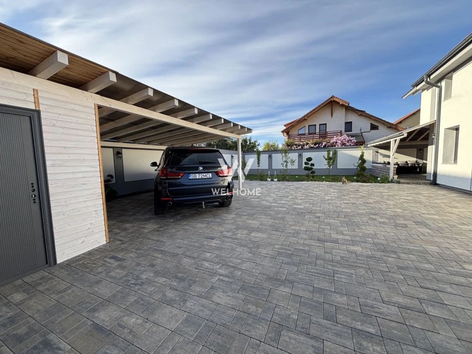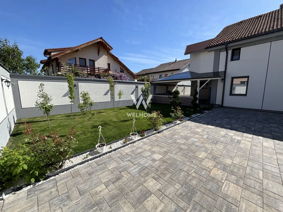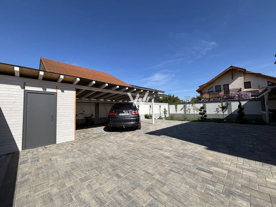 Curte generoasa pozitionata spre SUD cu carport, magazie, terasa acoperita, zona de barbeque in spatele casei.