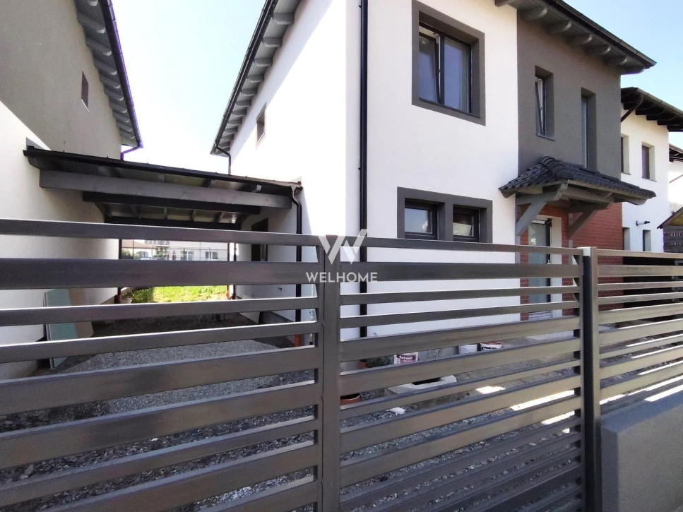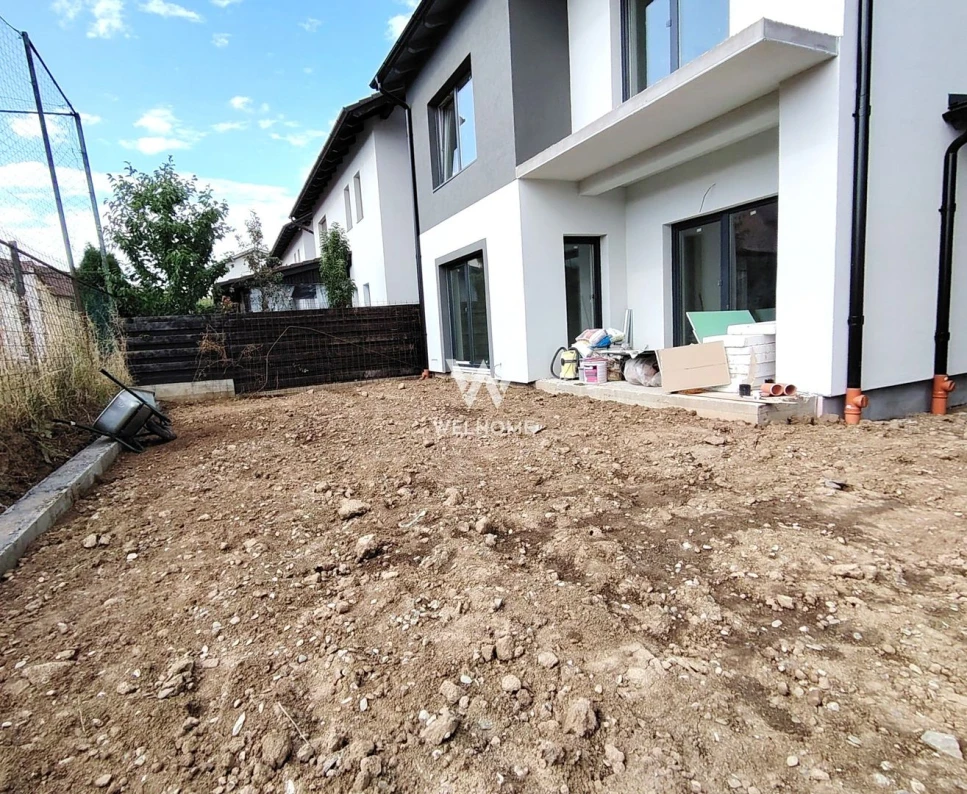 Curtea este suficienta pentru zona barbeque, joaca copii, zona verde si plante .... este distribuita major in spatele casei, pe laterala fiind un carport pt 2 masini