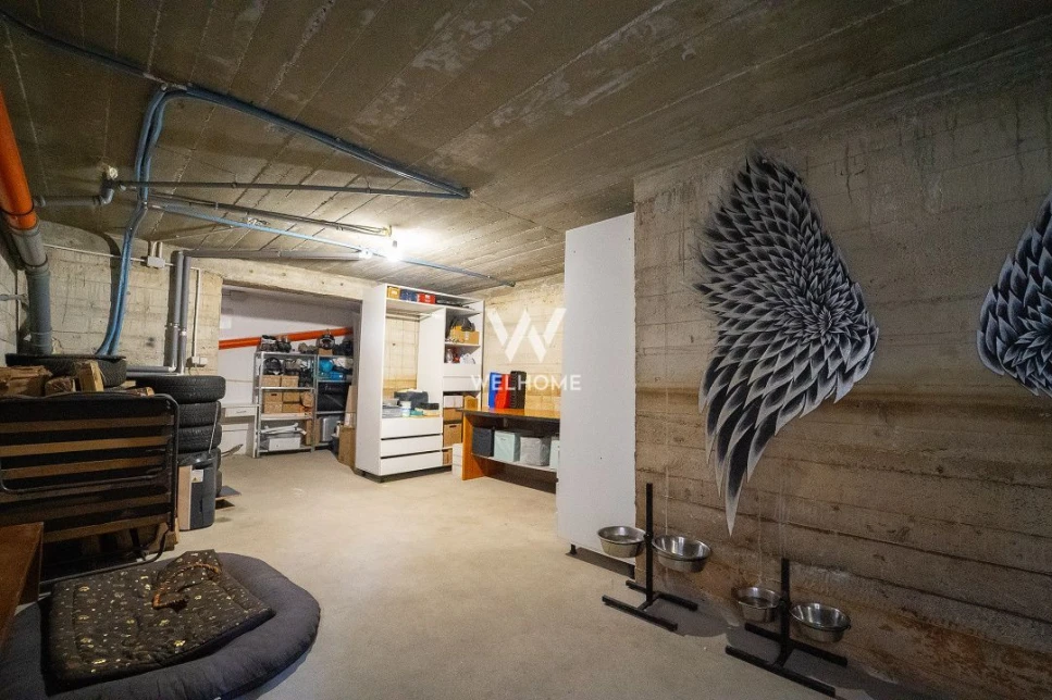 Casa dispune de pivniță formată din două încăperi (22,8 mp și 8,4 mp), carport acoperit de 41 mp și pod mansardabil, oferind multiple spații de depozitare sau extindere.