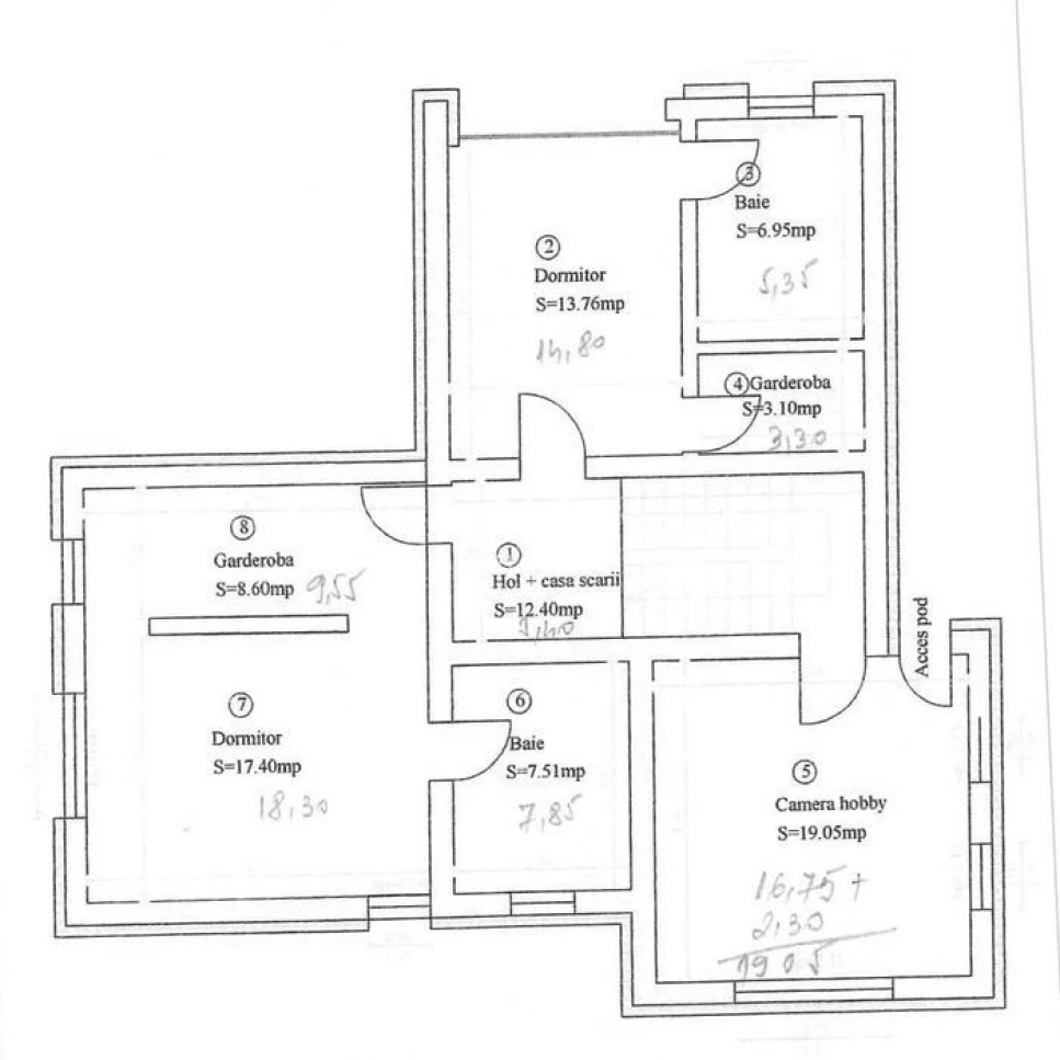 Etaj: 3 dormitoare, 2 bai, 2 dressinguri, spatiu depozitare, hol