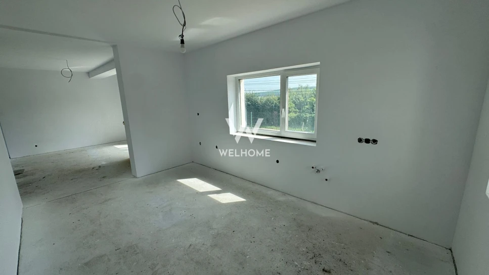 Interiorul casei se preda la ALB: pereți tencuiți, gletuiți, plus strat de lavabila, pardoseala cu șapă mecanizată, instalații electrice, tablou electric curenți tari și curenți slabi, instalație sanitară completă, fără obiecte sanitare, încălzire în pardoseală TECE, pompa de caldura. infrastructură cablatăpentru termostate, ușă la intrare.