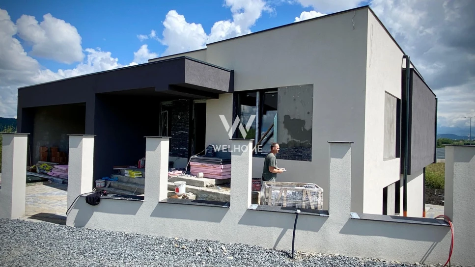 Predare in luna august 2025. Stadiu de predare la interior este LA CHEIE cu parchet, gresie , faianta, si tot strictul necesar. Iar exteriorul se preda LA CHEIE cu gard, curte pavata. Garaj pentru 2 masini (SUV) cu usi rabatabile electrice.