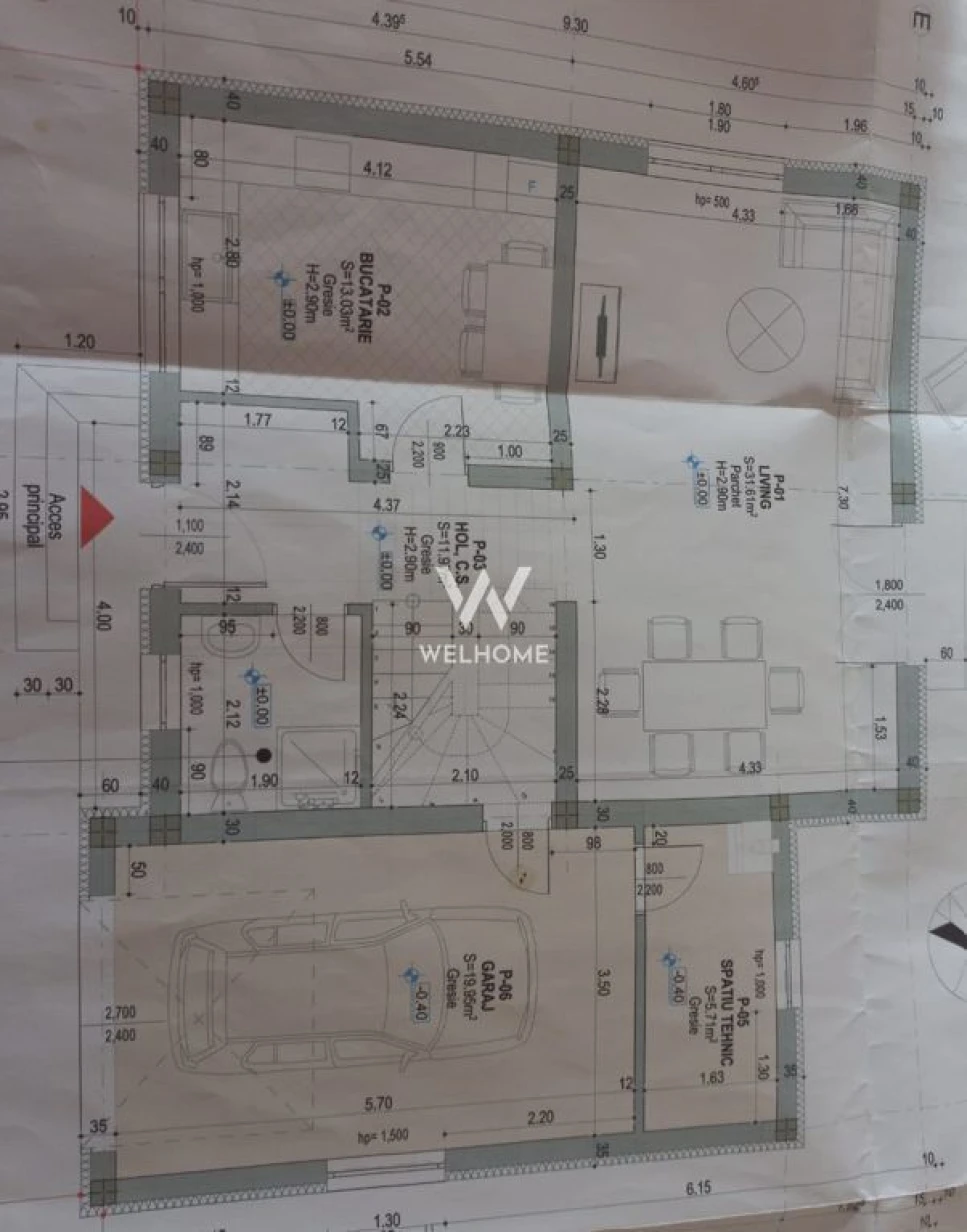 - Casa noua, compusa din: La Parter: living, bucatarie, baie, spatiu tehnic, garaj, casa scarii,