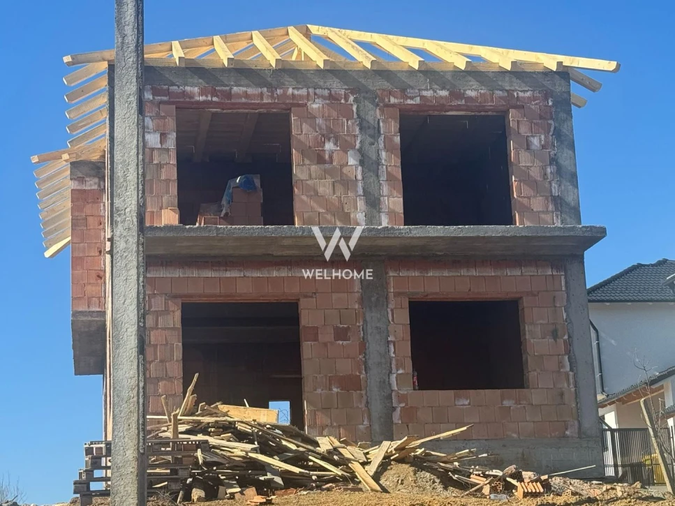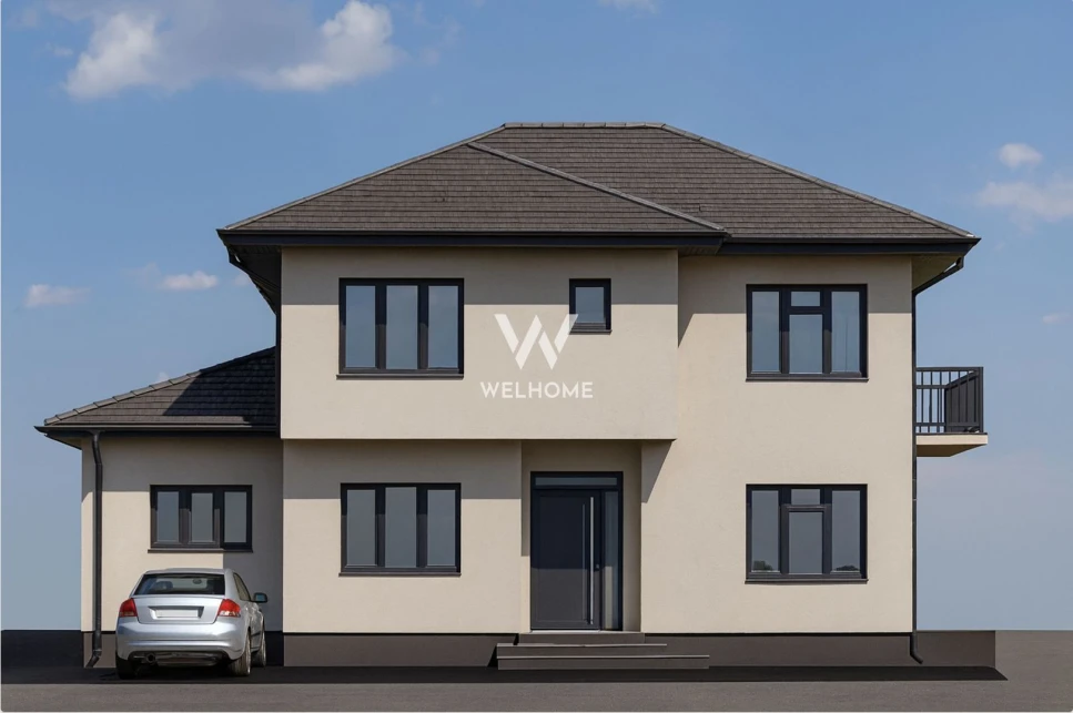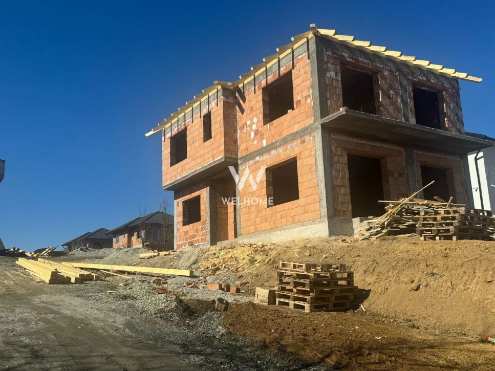 Stadiu de predare interior LA ALB (sapa, incalzire in pardoseala, lavabila) , exterior LA CHEIE (tencuiala decorativa ,pavaj, gard, poarta)