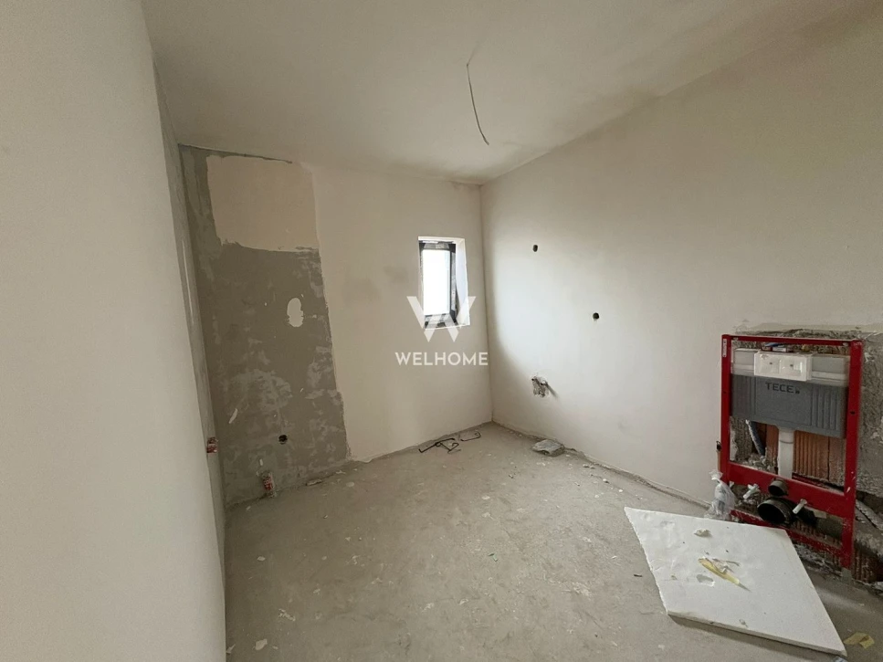 Stadiu de predare interior LA ALB (sapa, incalzire in pardoseala, lavabila) , exterior LA CHEIE (tencuiala decorativa ,pavaj, gard, poarta)