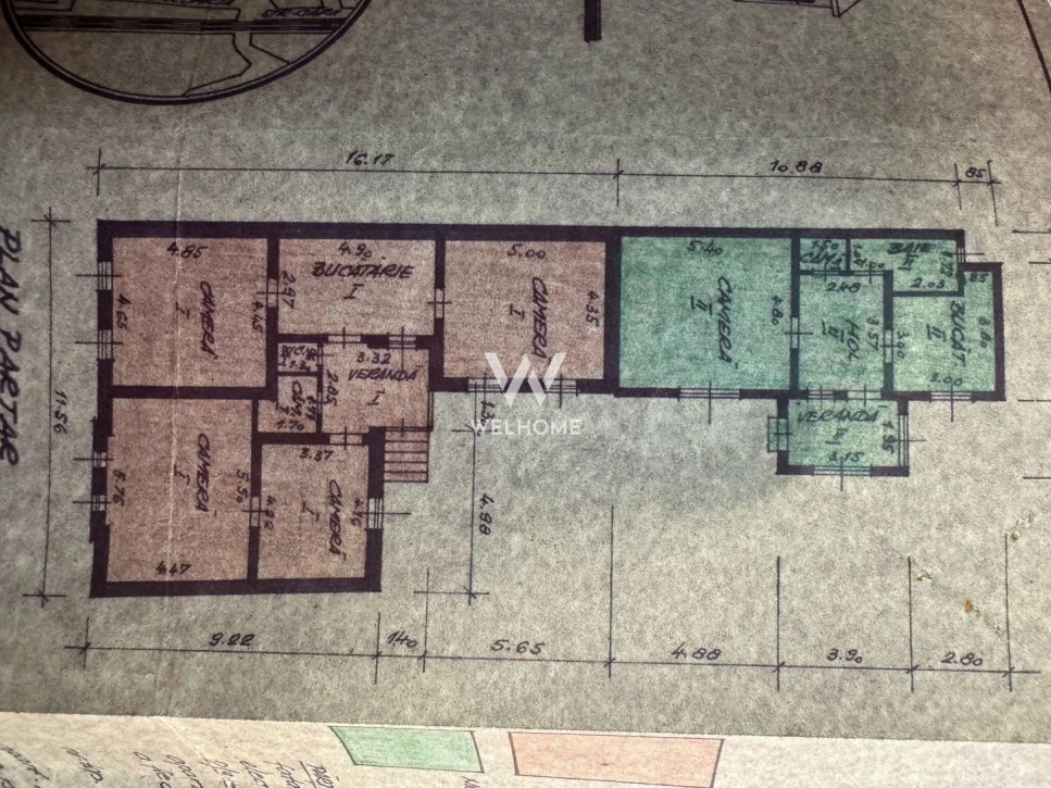 Corpul 1: hol, baie, camara, 4 camere si bucatarie . Una dintre camere este renovata
