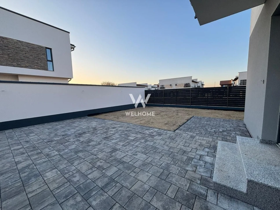 • Exterior – la cheie: fațadă finisată, pavaj premium, gard, poartă pregătită pentru automatizare, gazon, terasă amenajată