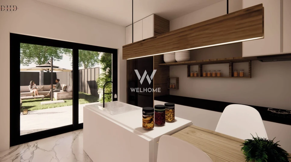 La Parter - hol de acces cu spatiu garderoba, living cu zona de dining si bucatarie, camera tehnica/camara, baie cu geam