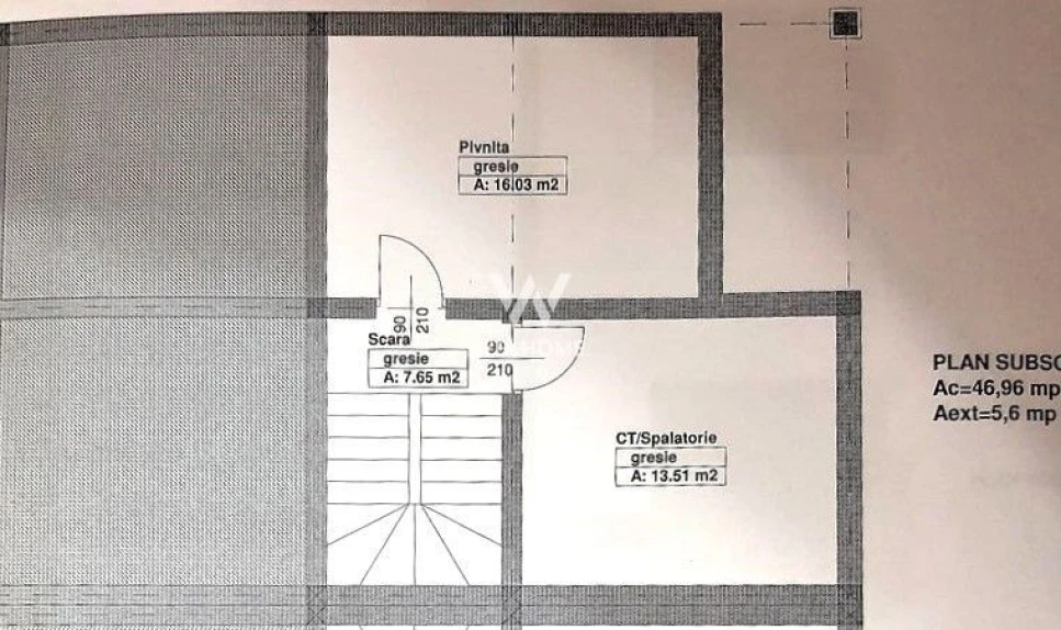 -Demisol: pivnita cu acces din casa, hol, camera tehnica/spalatorie