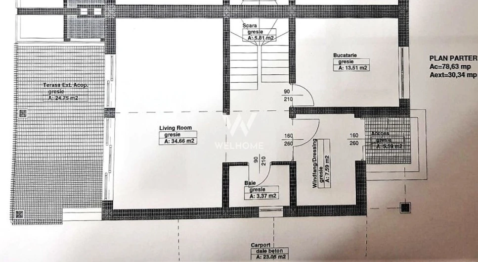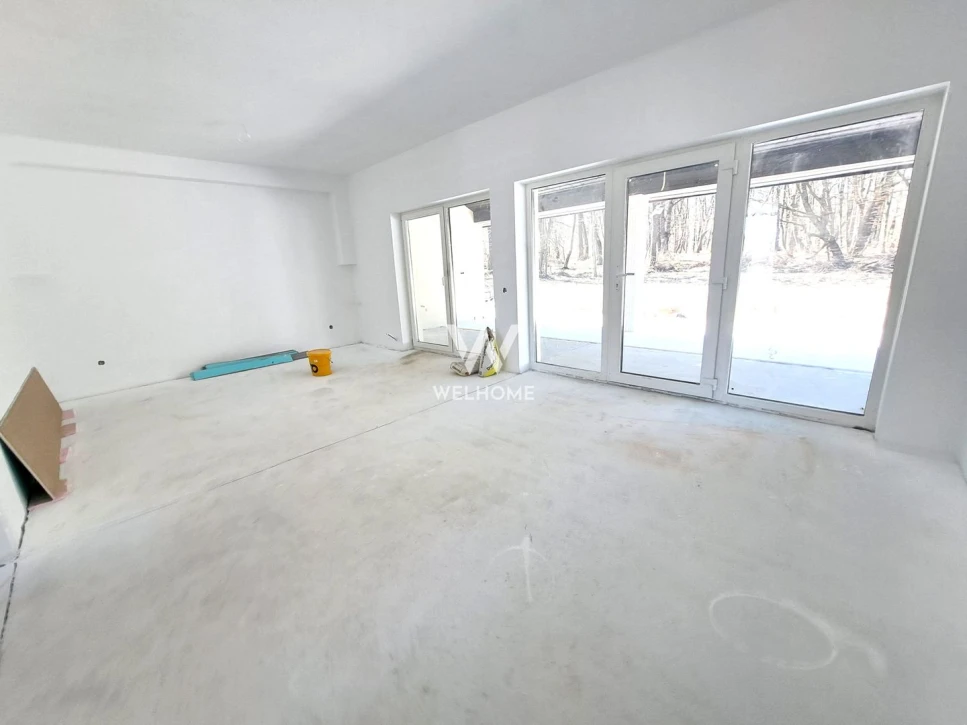 -Parter: hol larg cu spatiu garderoba, baie, bucatarie, living mare - 35mp cu acces la terasa acoperita 25 mp
