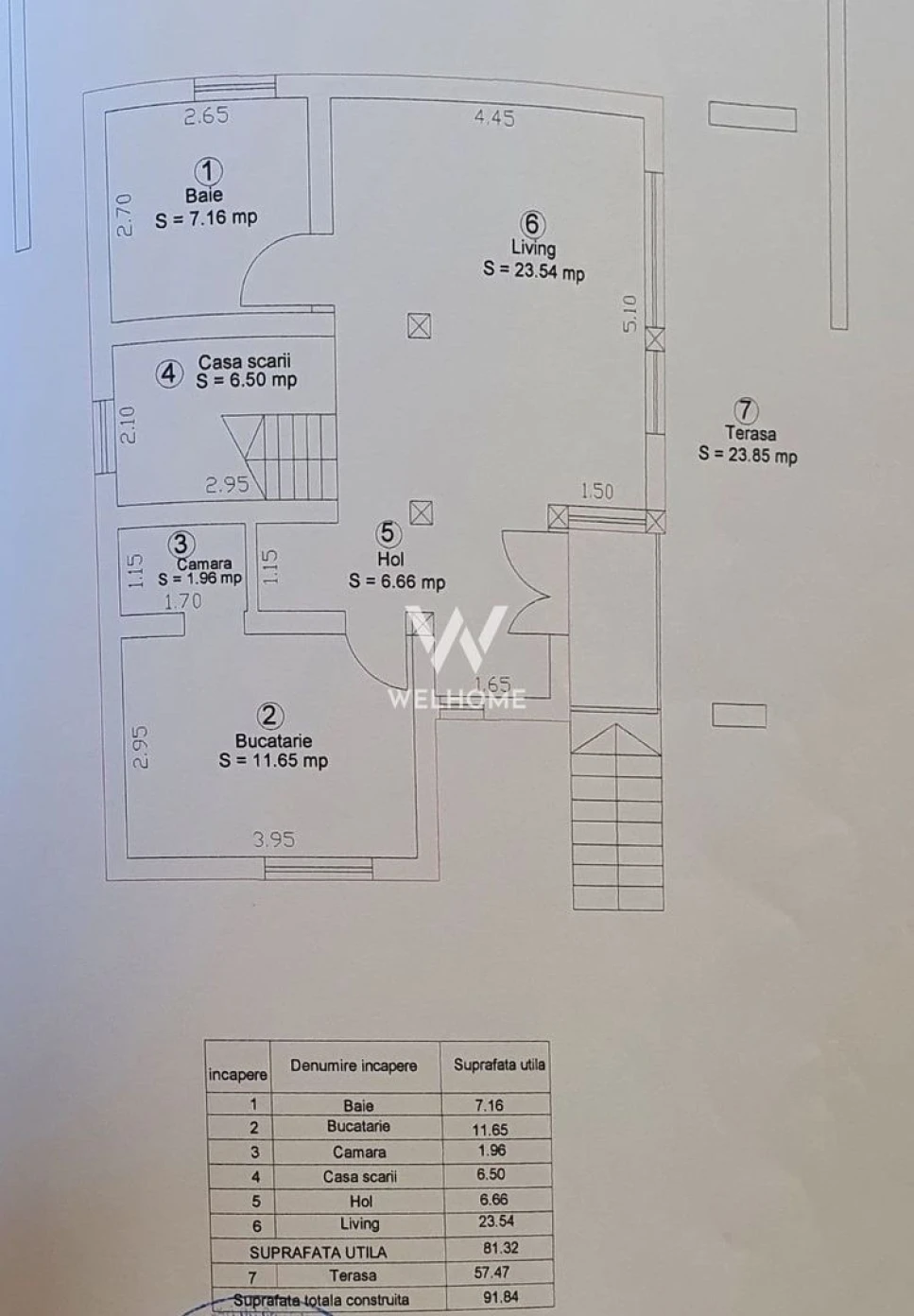 Podul este accesibil din hol, cu scara batanta. Placa beton turnata!