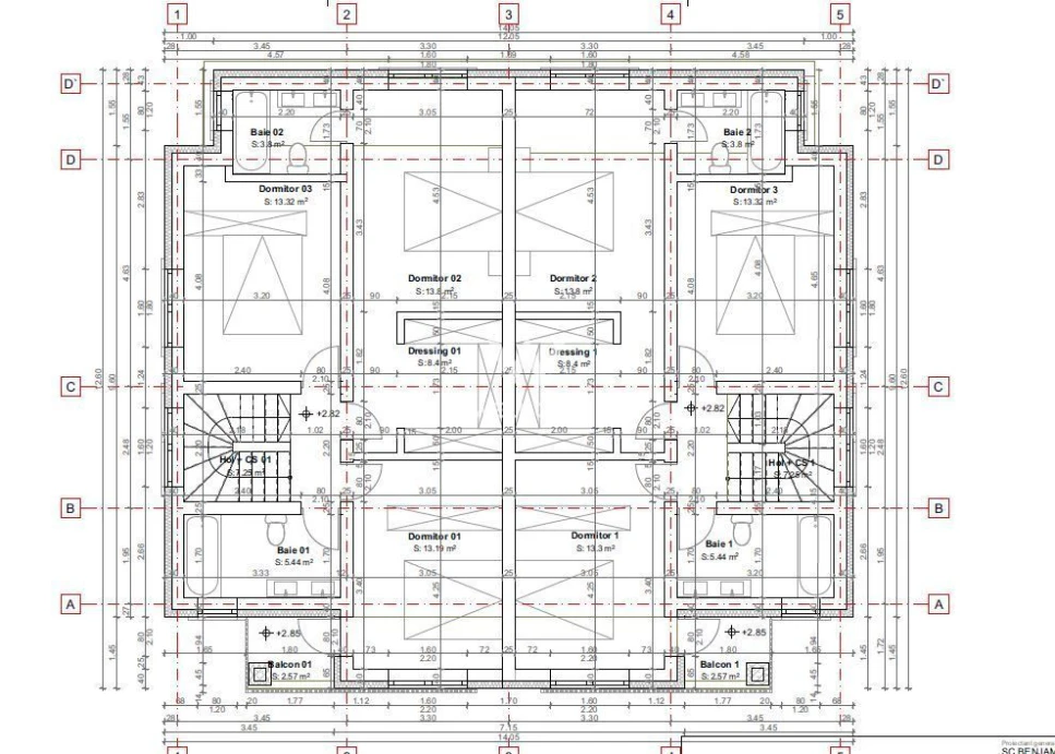 Etaj: 3 dormitoare spațioase, dormitor matrimonial cu dressing și baie proprie, baie secundară, balcon.