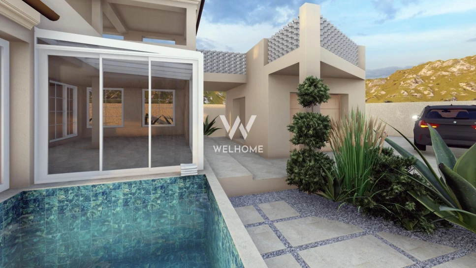 Din zona de zi ai acces intr-o terasa inchisa cu sticla de de 36mp si la piscina pozitionata pe soare.
