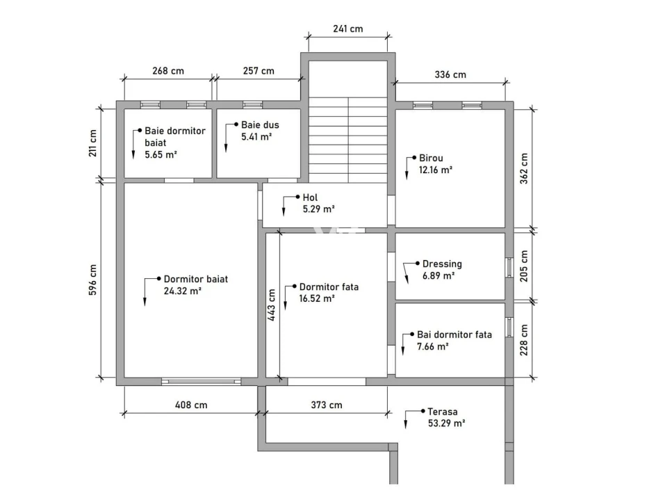 - un domitor de 22,38 mp cu o baie proprie de 5,17 mp.